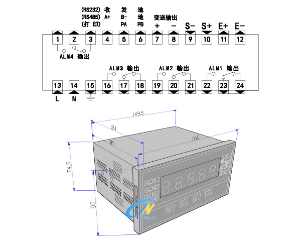 最多四路,每路可選下限、上下限、上下限區間報警; 觸點容量:(3A/220VAC); |