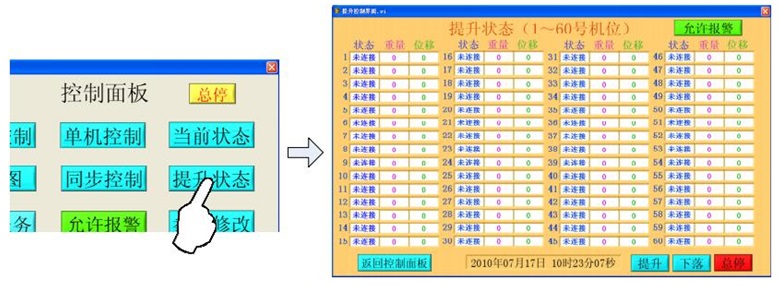 8、采用柱狀圖等方式對升降架的工作狀態進行實時顯示,直觀明了。